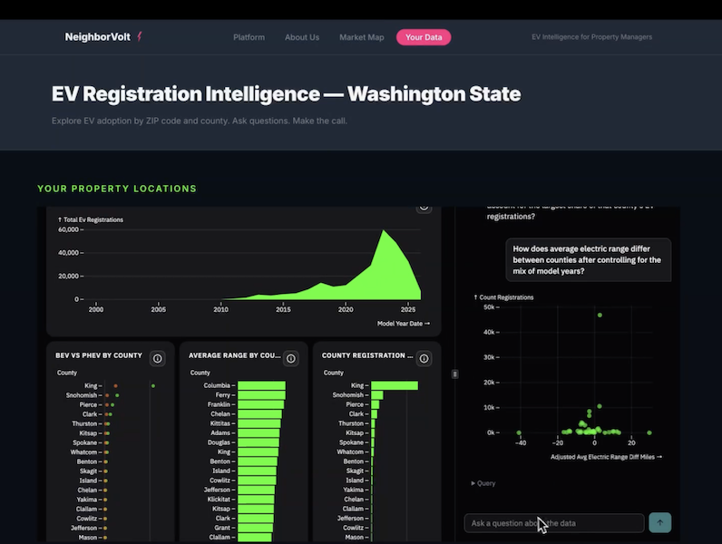 The paired structure of the Ridge combines two distinct functions: The Dashboard provides visual sense-making, giving users a high-level understanding of the data's shape and key metrics. The Data Agent acts as a natural language exploration tool, allowing users to ask free-form follow-up questions and solve the long tail of specific queries that aren't explicitly visualized on the dashboard. Linked interactivity means that either can respond to filters or selections in the other, extending the exploratory power of both the dashboard and Data Agent.